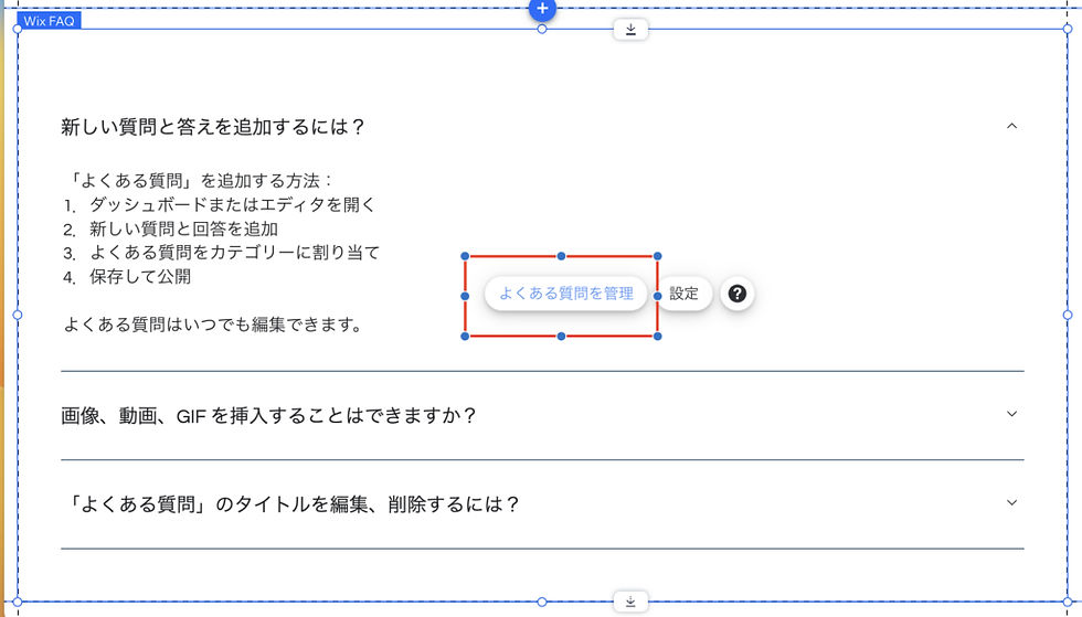 まず前章でご説明した内容の、FAQの追加方法より、「 Wix FAQ」を追加下さい。