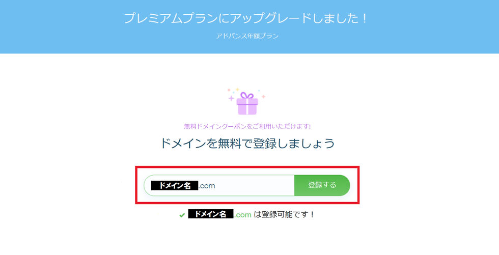 一部のプレミアムプランで1年間のドメイン無料クーポンがもらえる