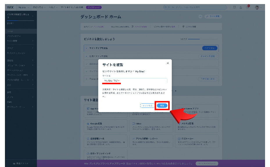その後、サイト複製のボタンが出てきますので、「複製」をクリック。