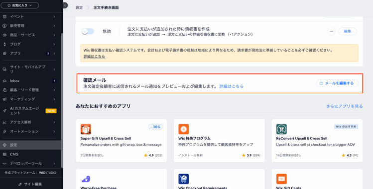 Wix ストアアプリに関わる部分に関しては、設定からデザインやレイアウトを変更できます。